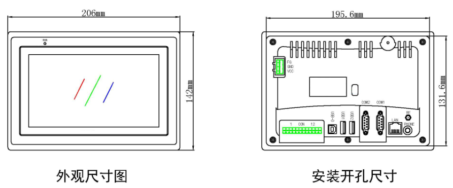 安裝開孔尺寸:195.6×131.6(單位mm)