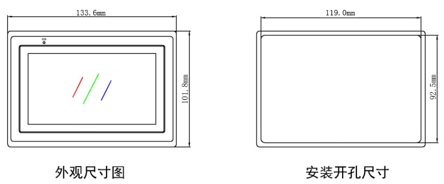 安裝開孔尺寸:119.0×92.5(單位mm),建議實(shí)際開孔比該尺寸大1mm。